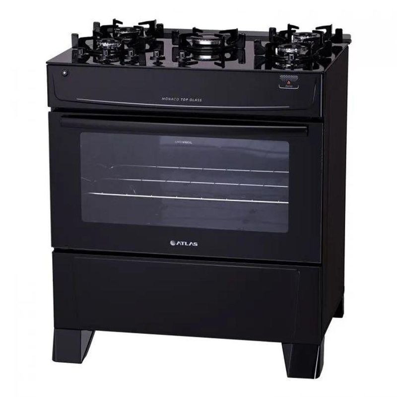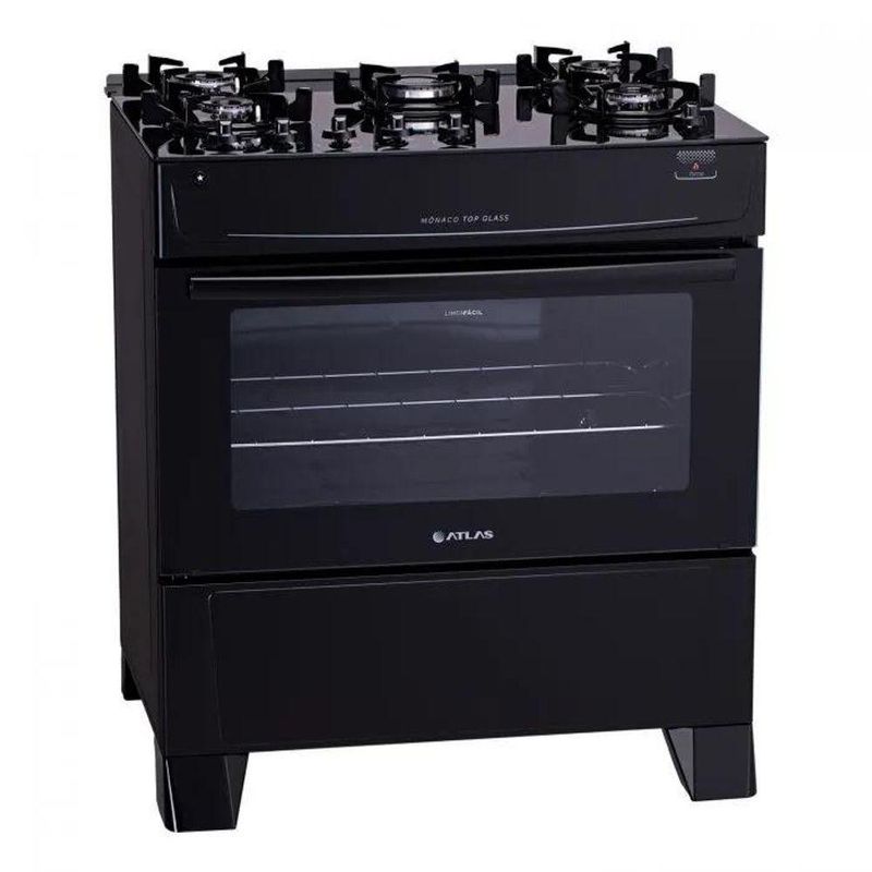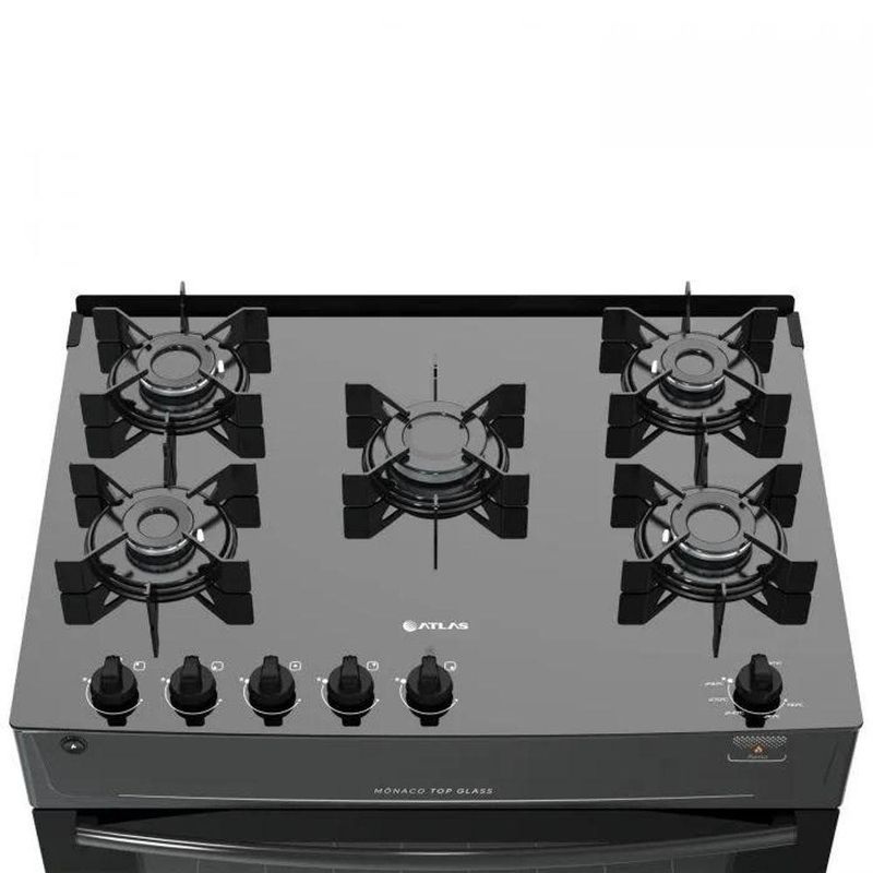 Fogão A Gas 5 Bocas Atlas Monaco Top Glass Preto Bivolt