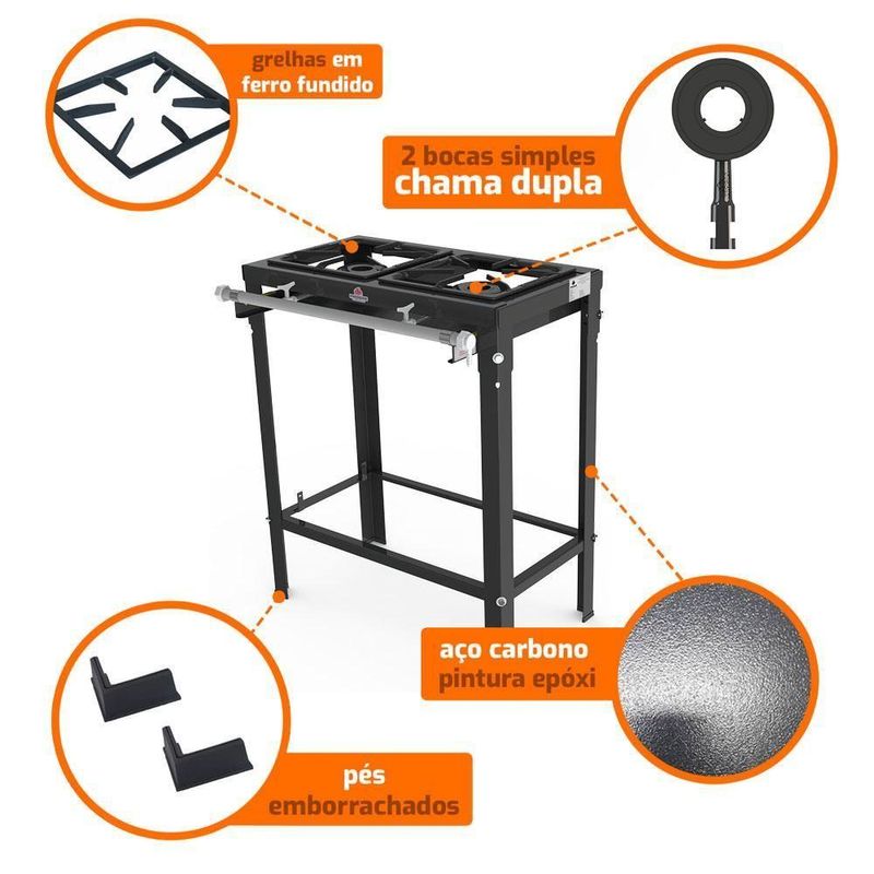 Fogão A Gás Baixa Pressão Com Pés Em Aço Carbono E 2 Queimadores Simples PMS-200 ProgásMUITO IMPORTANTE: