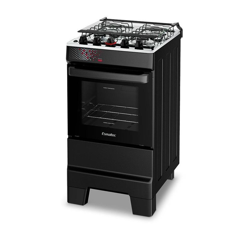 Fogão A Gás Esmaltec Mesa Inox Tampa De Vidro Forno 50L Ideal Top Preto 4 Bocas BivoltFogão Esmaltec 4 Bocas Ideal Top com Mesa de Inox PretoO Fogão 4 Bocas Esmaltec Ideal Top a Gás une modernidade, funcionalidade e resistência para elevar sua experiência na cozinha. O destaque está na mesa em inox com tampo de vidro temperado, que garante um visual sofisticado, maior proteção no uso diário e facilita a limpeza.