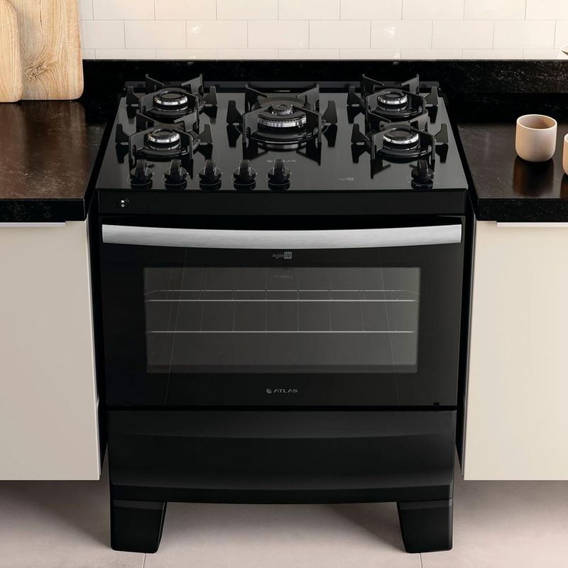 Fogão Atlas Agile Glass 5 Bocas Com Acendimento Automático E Tripla Chama Preto