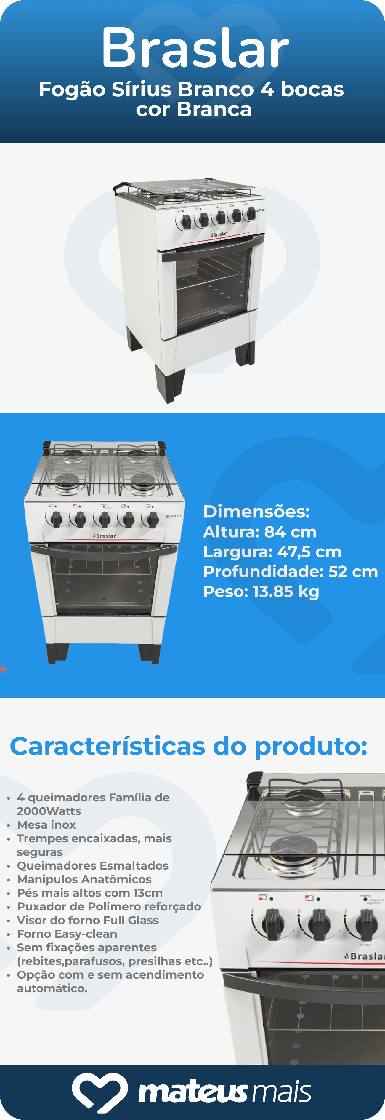 Fogão 4 Bocas Sírius Braslar Branco