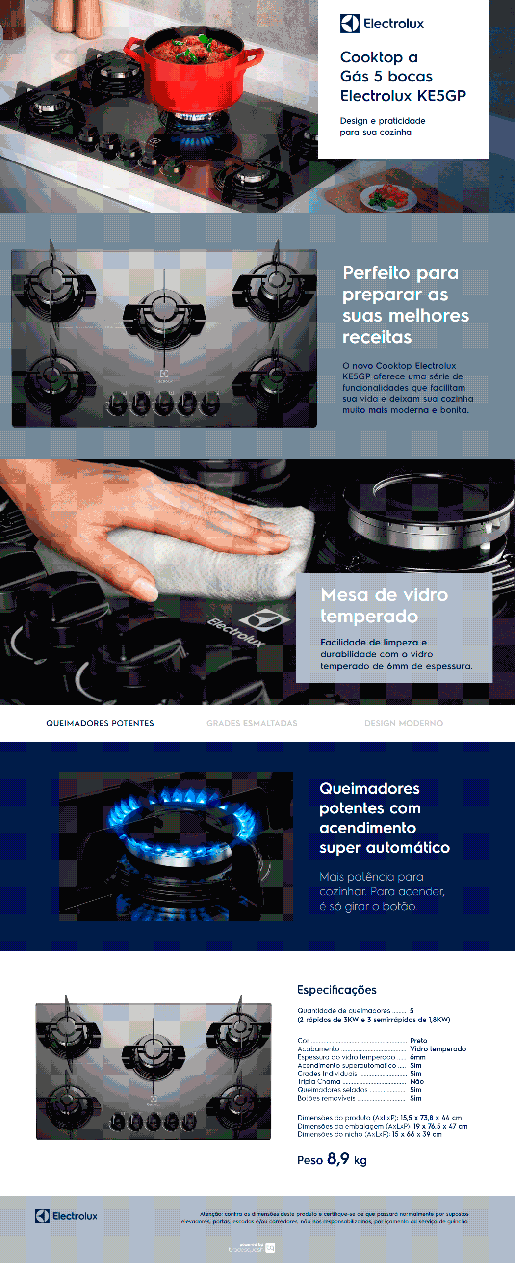 Cooktop 5 Bocas KE5GP Mesa de Vidro Electrolux Preto Bivolt