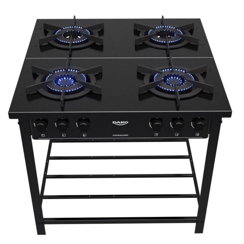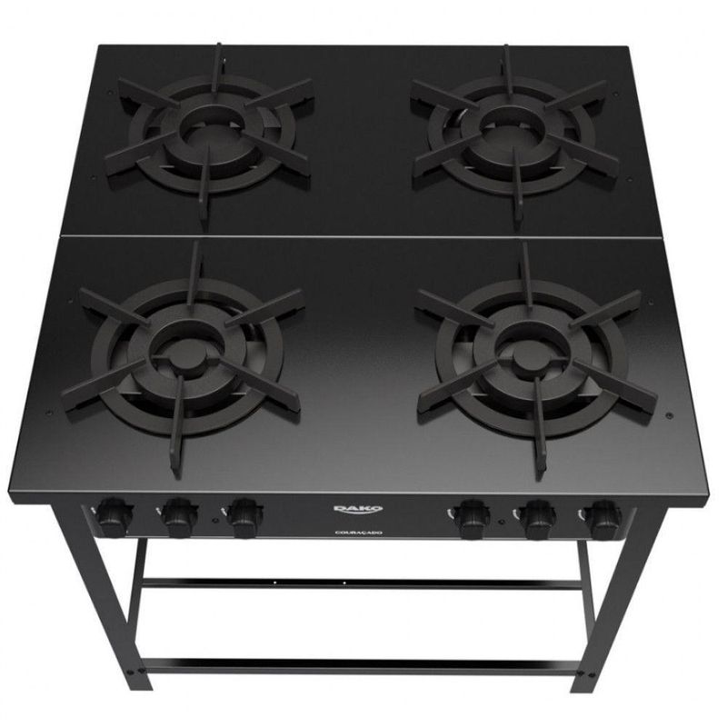 Fogão Dako Industrial 4 Bocas PretoFogao Dako Industrial 4 BocasCaracteristica:Grades extras robustas em ferro fundido com 6 pontos de apoio.