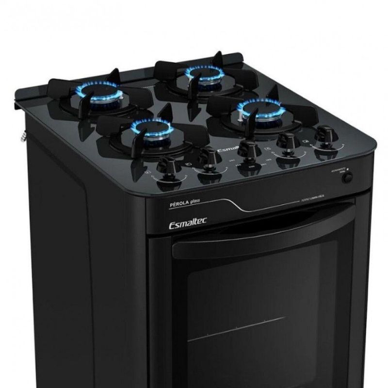 Fogão De Piso 4 Bocas Pérola Glass Com Mesa De Vidro 4115 Esmaltec Preto Bivolt