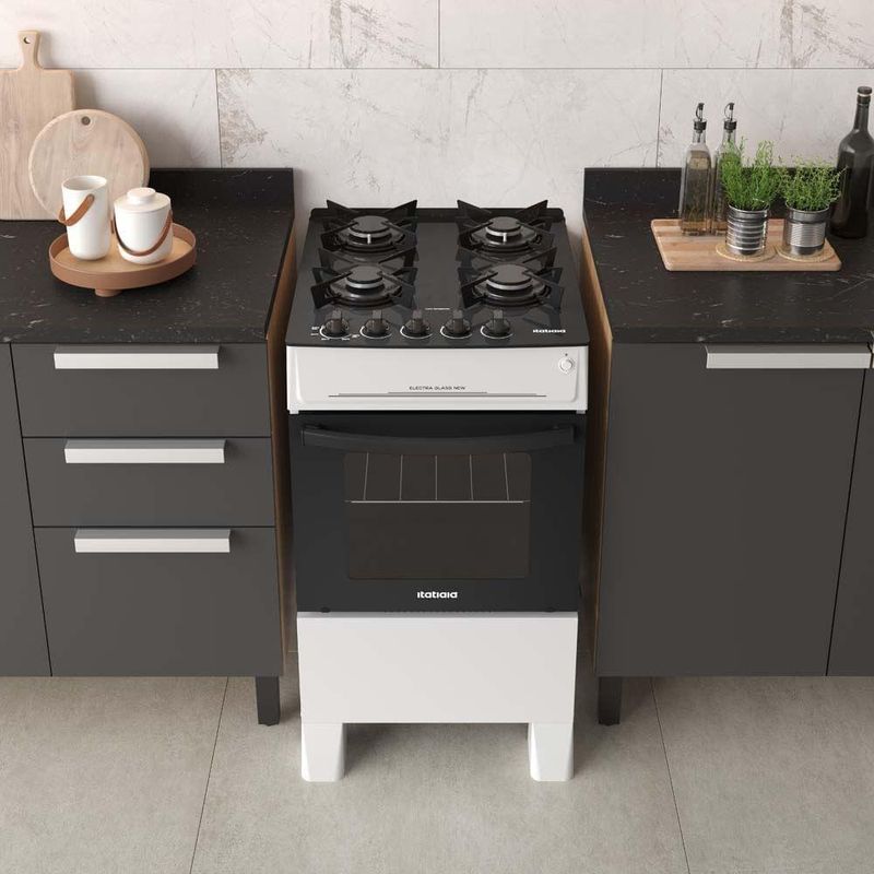 Fogão Electra Glass New 4 Bocas - BrancoO Fogão Electra Glass New 4 Bocas da marca Itatiaia é a escolha perfeita para quem busca qualidade e modernidade na cozinha. Com um design elegante e funcionalidades avançadas, este fogão vai transformar a sua experiência culinária.Características DestacadasO Fogão Electra Glass New 4 Bocas se destaca pela sua eficiência e praticidade. Com trempes com 6 apoios e acabamento fosco, oferece maior estabilidade para suas panelas. O puxador em aço com design moderno proporciona praticidade e conforto ao abrir a porta do forno. Além disso, conta com acendimento automático e Top Control na mesa de vidro, com manípulos que indicam a potência ideal para cada receita. Os manípulos removíveis facilitam a limpeza e manutenção do fogão.Design Funcional e DurabilidadeO Fogão Electra Glass New 4 Bocas é ideal para cozinhas compactas, oferecendo um eletrodoméstico que se adapta perfeitamente ao espaço disponível. Além disso, é um produto durável e resistente, garantindo qualidade e desempenho por muito tempo. A montagem é de responsabilidade do consumidor, seguindo as instruções do manual.Nota: As cores podem variar de acordo com as configurações do monitor.Aproveite já e adquira o Fogão Electra Glass New 4 Bocas para transformar a sua cozinha em um espaço moderno e funcional!Não faturamos para cnpjEspecificações Técnicas Marca: Itatiaia