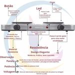 Fogão Elétrico De Mesa 2 Pratos 2000w 220v Fm-02 Agratto Não precisa de GásFunciona com eletricidadeDois pratos de aquecimentoControle de temperatura independenteCorpo em aço inoxidávelCom luz de funcionamentoPara qualquer tipo de panela que sirva em fogão com chamaGarantia: 12 mesesPeso: 2,71 kgEmbalagem: 50 × 80 × 27,5 cmProduto Montado:Comprimento: 48.5 cmLargura: 26.5 cmAltura: 7.0 cmVoltagem: 220VFormato: Retângular | Fora De Linha: false | Potência: 2000W | Tipo: De chão | Capacidade: 2 | Modelo: FM-02 | Fabricante: Agratto | Voltagem: 220V | Múltiplo De Compra: 4,00 | Cor: Cromado