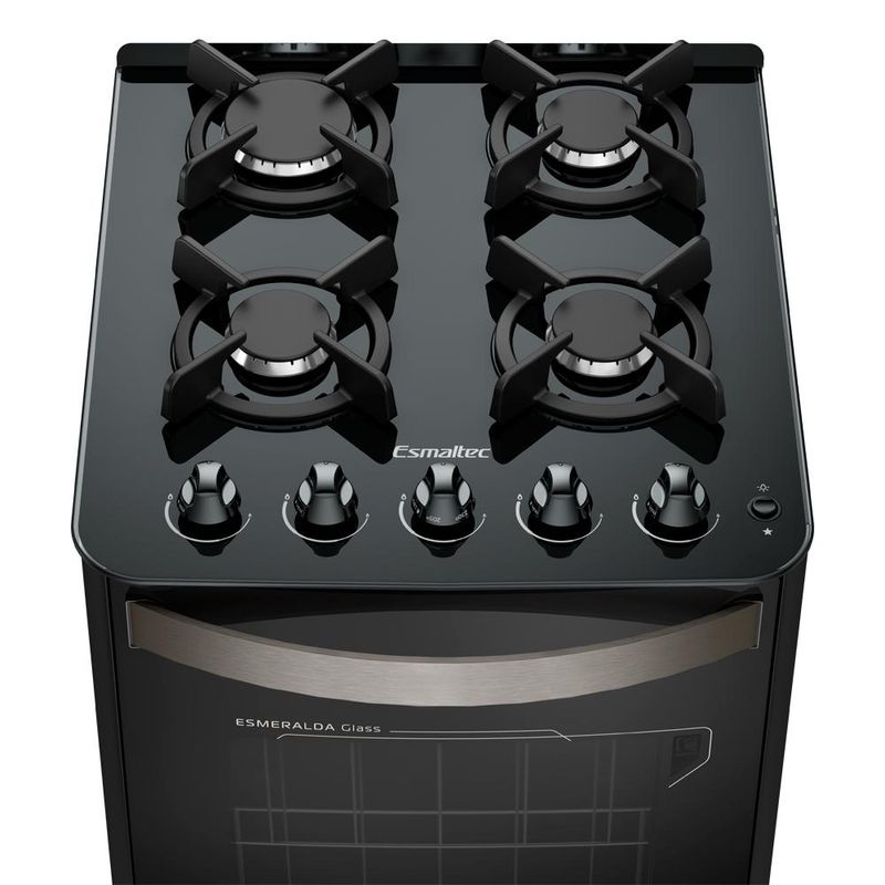 Design Full Glass: Frente total em vidro temperado. Elegância e facilidade para limpar.Mesa de vidro temperado: Qualidade e alta resistência.Trempes de ferro fundido e individuais: Segurança e estabilidade para as panelas.Acendimento automático total: Mais economia e praticidade.Forno Limpa Fácil: Facilidade na hora de limpar.Puxador robusto em alumínio escovado: Modernidade e elegância.Alça lateral: Facilita o transporte e deslocamento para a limpeza.Prateleiras no forno: 1 ajustável e 1 auto deslizante.Luz no forno