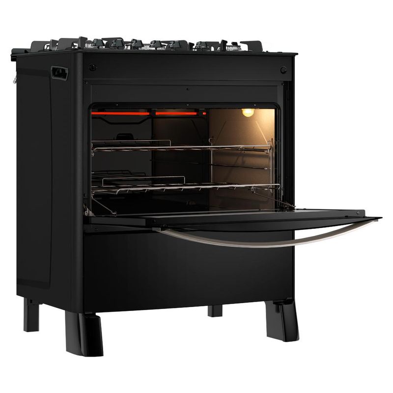 Design Full Glass: Frente total em vidro temperado. Elegância e facilidade para limpar.Mesa de vidro temperado: Qualidade e alta resistência.Timer digital touch e Grill elétrico: Praticidade e precisão no preparo das receitas.Queimador tripla chama: Três anéis de chama. Potência e agilidade na hora de cozinhar.Trempes de ferro fundido e individuais: Segurança e estabilidade para panelas.Acendimento automático total: Mais economia e praticidade.Forno Limpa Fácil: Facilidade na hora de limpar.Puxador robusto em alumínio escovado: Modernidade e elegância.Alça lateral: Facilita o transporte e deslocamento para a limpeza.Prateleiras no forno: 1 deslizante e 1 auto deslizante.Luz no forno