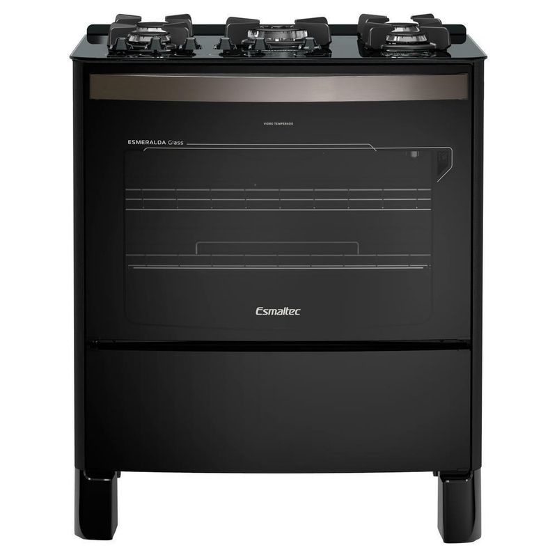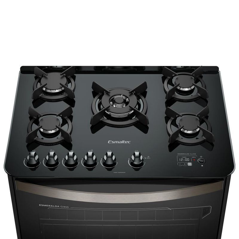Fogão Esmaltec Esmeralda Glass Gourmet 5 Bocas Preto Com Timer Digital E Grill Elétrico