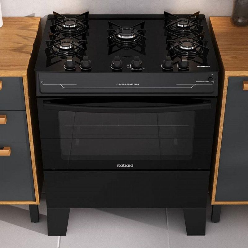 Fogão Itatiaia Electra Plus 5 Bocas Acendimento Automático Preto Fosco BivoltMais Espaço e Estabilidade