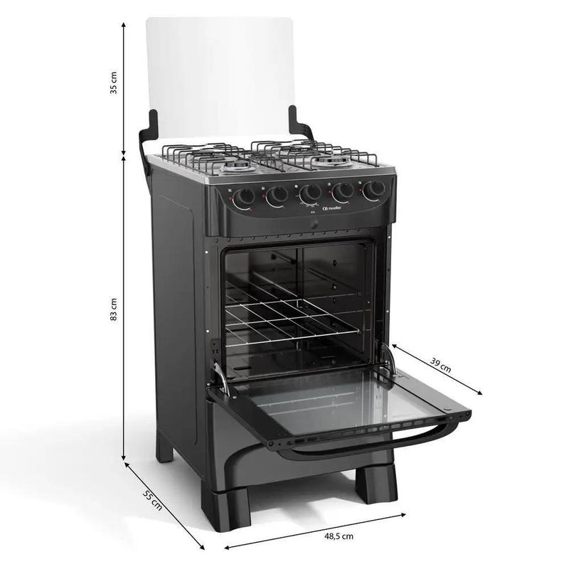 Fogão Mueller 4 Bocas Preto Fosco MFI4BB - Bivolt