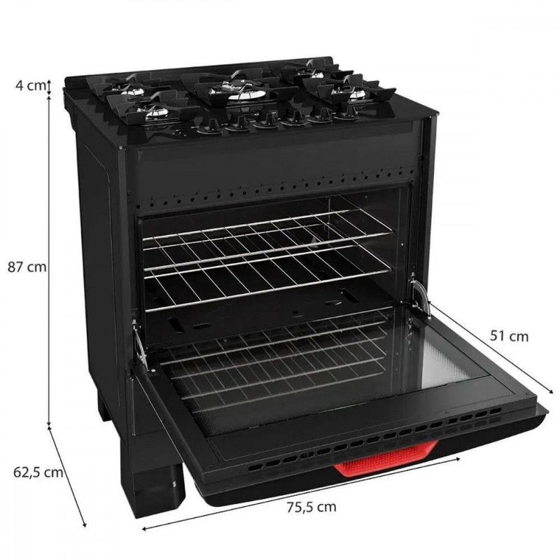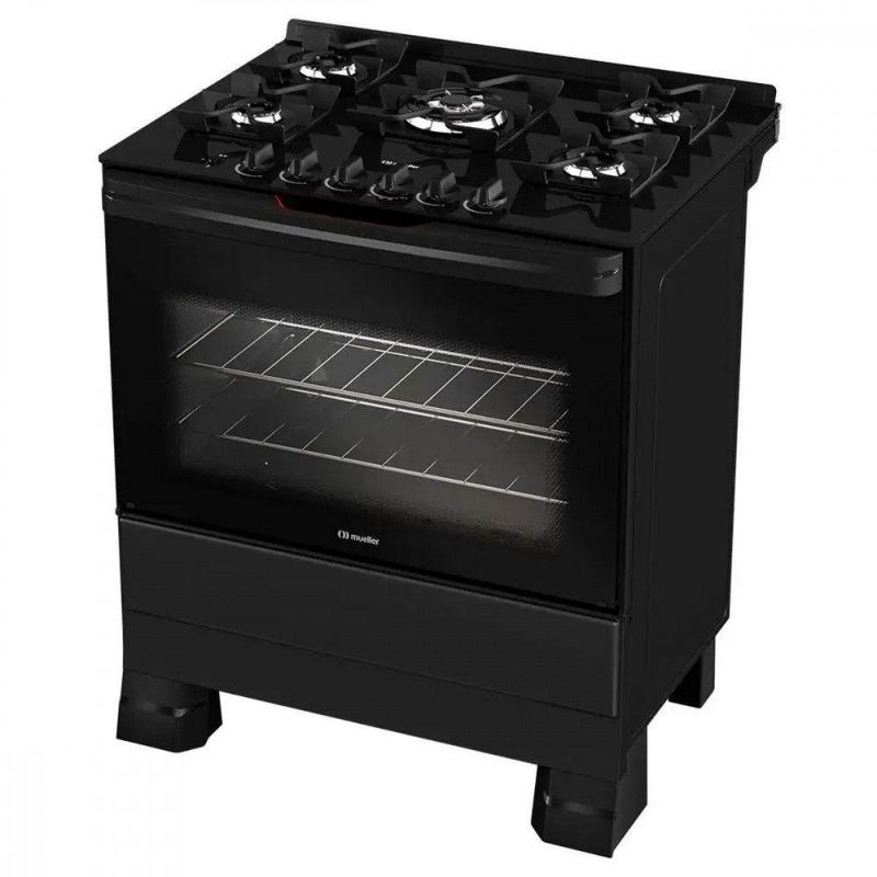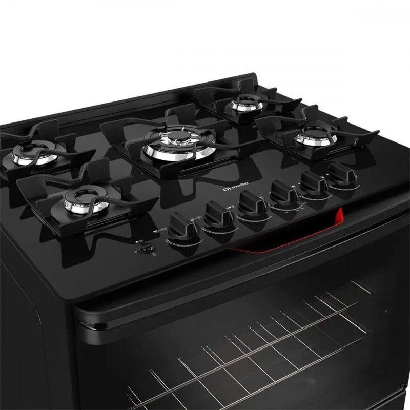 Fogão Mueller 5 Bocas Com Mesa De Vidro E Grades De Ferro Preto Bivolt