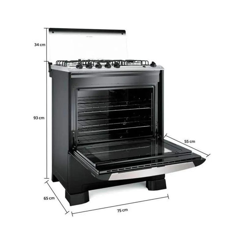 Fogão Mueller 5 Bocas Decorato Com Tripla Chama Preto Fosco Bivolt