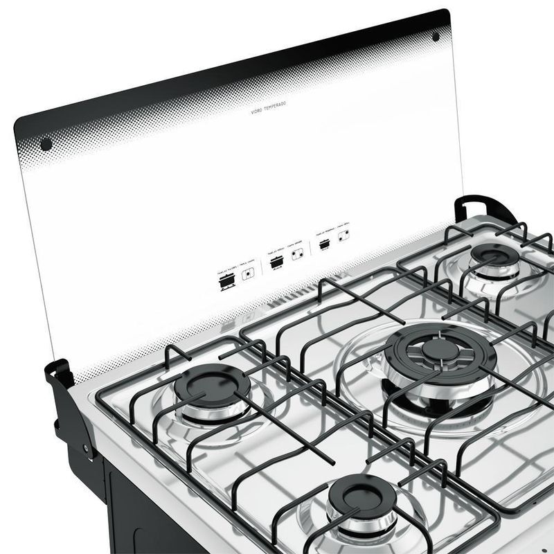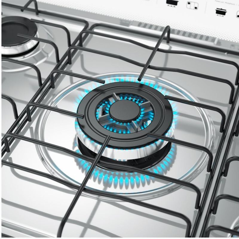Dimensões internas do forno: A 36cm x L 60cm x P 45cmImportante:Seu fogão é bivolt, mas a lâmpada do forno possui voltagem de 127V ou 220V. O forno virá sem a lâmpada, é necessário que você adquira a lâmpada, modelo E14 de 15W, de acordo com a voltagem de sua residência.Os fogões Mueller saem da fábrica regulados e preparados para funcionar com gás liquefeito de petróleo (GLP). Para a conversão do produto para Gás l GN é necessário solicitar o atendimento de um dos nossos postos autorizados. Assim que receber seu produto, entre em contato com o SAC Mueller e solicite sua conversão. Será necessário informar o número de série do produto. A conversão é gratuita dentro do prazo de garantia se o produto não tiver sido utilizado.Na hora de instalar seu fogão observe se o regulador de gás e mangueira estão dentro da validade. Confira o ano de vencimento gravado no regulador e também na mangueira. Eles não devem ser utilizados por mais de 5 anos. Ao comprar um regulador , observe a medida kg/h. Reguladores de 1 kg/h são ideais para os tradicionais eletros de 4 bocas, já os de 2 kg/h são recomendados para eletros de 5 bocas ou com queimadores como o Tripla ou Dupla Chama.