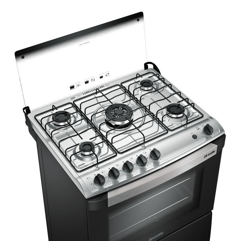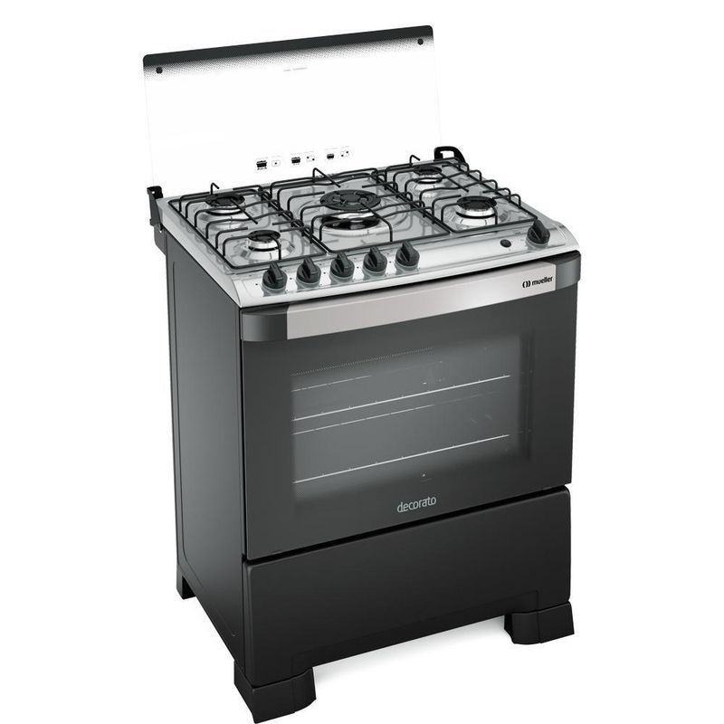 Fogão Mueller 5 Bocas Decorato Preto Fosco Com Tripla Chama Preto Fosco BivoltQuem gosta mesmo de cozinhar, entende o que isso significa. Seja colocar uma refeição quentinha na mesa, ou impressionar com pratos elaborados, cozinhar é um ato de carinho e cuidado. Inspire-se a criar experiências incríveis cozinhando com os fogões Decorato!Características:Queimadores: base em alumínio e espalhador em aço esmaltado preto fosco