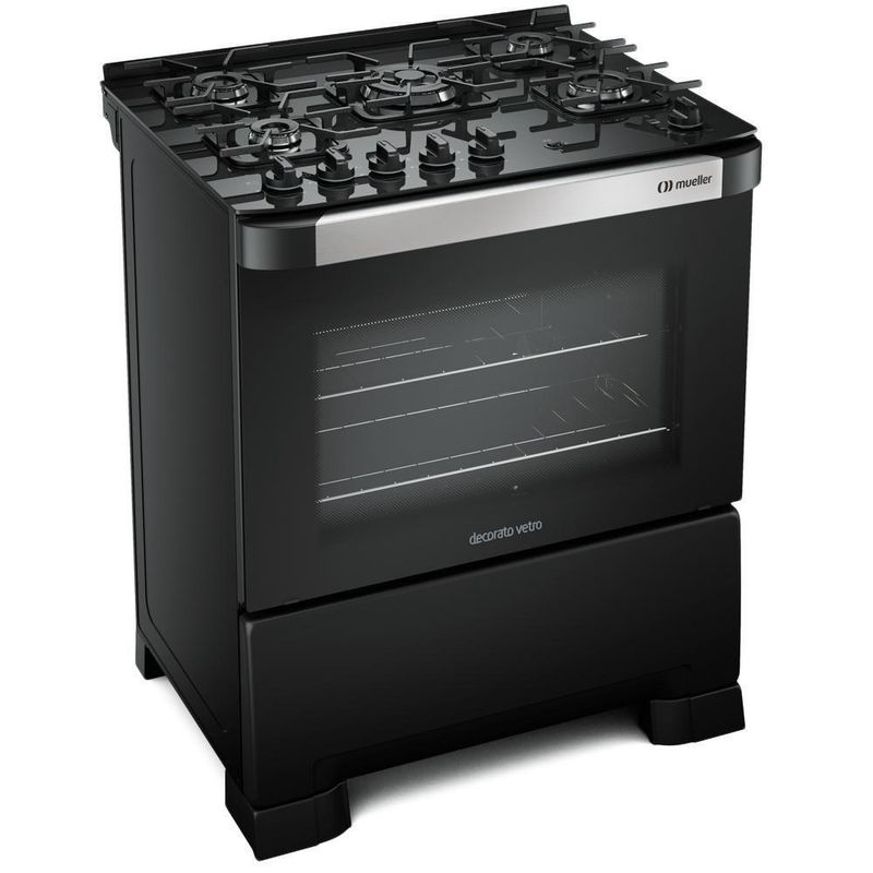 Fogão Mueller 5 Bocas Decorato Vetro Preto Fosco Com Mesa De Vidro Preto FoscoOs fogões Decorato Vetro foram feitos para as pessoas que vêem na cozinha o espaço perfeito para expandir a criatividade, descobrir habilidades, aperfeiçoar técnica e saborear os bons momentos da vida. Inspire-se a criar com estes fogões!Características:Queimadores: base em alumínio e espalhador em aço esmaltado preto fosco