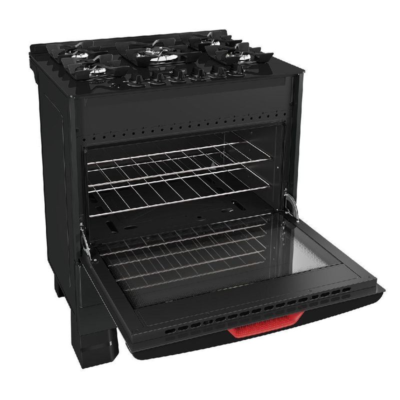 Fogão Mueller 5 Bocas Preto Bivolt Mesa de Vidro e Tripla Chama MFV5BFDescubra o novo padrão em elegância e funcionalidade com o Fogão Mueller 5 Bocas Preto com Mesa de Vidro MFV5BF. Com um design moderno que combina beleza e eficiência, o MFV5BF possui uma mesa ampla em vidro temperado que não apenas valoriza o ambiente, mas também facilita a limpeza diária.O destaque vai para o queimador central tripla chama de 3.700W, proporcionando uma Performance Gourmet que acelera suas receitas favoritas. Para garantir estabilidade e segurança, o fogão vem equipado com grades individuais de ferro fundido, que não só suportam firmemente suas panelas, mas também contam com um sistema de encaixe exclusivo Mueller, garantindo durabilidade e facilidade de uso por anos. Além de funcional, o MFV5BF é projetado para facilitar sua vida diária: o puxador ergonômico e moderno oferece um toque de beleza enquanto proporciona conforto ao abrir a porta.No interior do forno, duas prateleiras ajustáveis permitem que você prepare múltiplas receitas ao mesmo tempo, com uma melhor visualização dos assados através do vidro. E para manter sua cozinha sempre impecável, o acabamento Total Clean no interior do forno garante uma limpeza sem esforço, enquanto a luz interna adiciona praticidade na hora de monitorar suas receitas.Descubra hoje mesmo por que este modelo é a escolha ideal para quem busca o melhor em qualidade e estilo.Especificações técnicas: