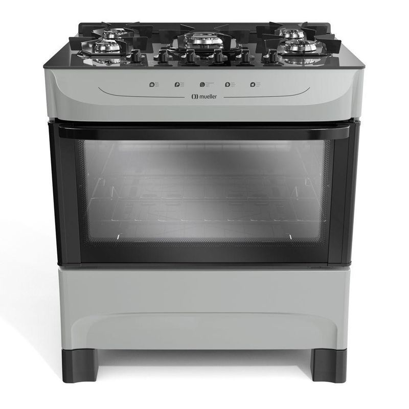 Fogão Mueller Titânio 5 Bocas Com Mesa De Vidro E Acendimento Mfv5bb O Fogão 5 Bocas com mesa de vidro e acendimento MFV5BB da Mueller possui diferenciais únicos que só os fogões Mueller com mesa de vidro têm. Possui grades de aço esmaltado individuais com 6 pontos de apoio e o sistema exclusivo de encaixe das grades, possui queimador ultra chama e queimadores família e médios que agilizam o preparo de suas receitas. Possui acendimento automático total dos queimadores da mesa e do forno e botões sobrepostos a mesa, que oferece mais conforto no manuseio. Além disso, o Fogão MFV5BB possui porta com visor panorâmico para uma melhor visualização do interior do forno. E para facilitar ainda mais sua rotina de limpeza o Fogão MFV4BB possui forno com interior Total Clean, uma tecnologia que facilita a limpeza.