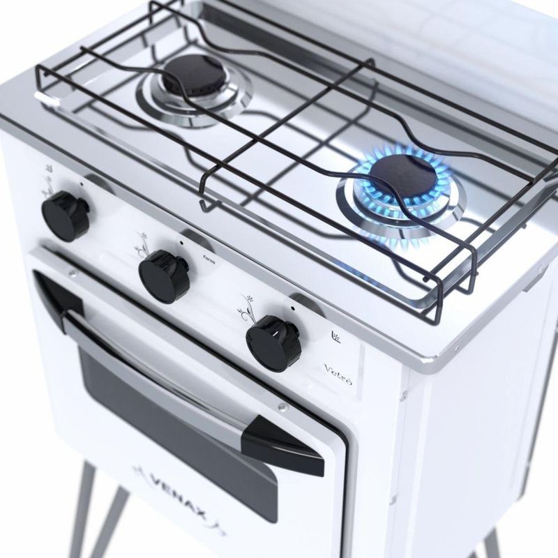 Fogão Portátil 2 Bocas Venax Gemini Vetrô Gas GLP BrancoCaracterísticas Principais:Produto: Fogão Portátil 2 Bocas Venax Gemini Vetrô