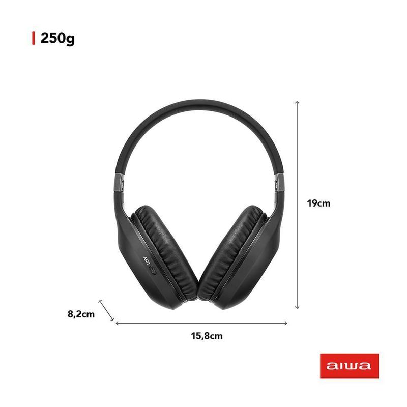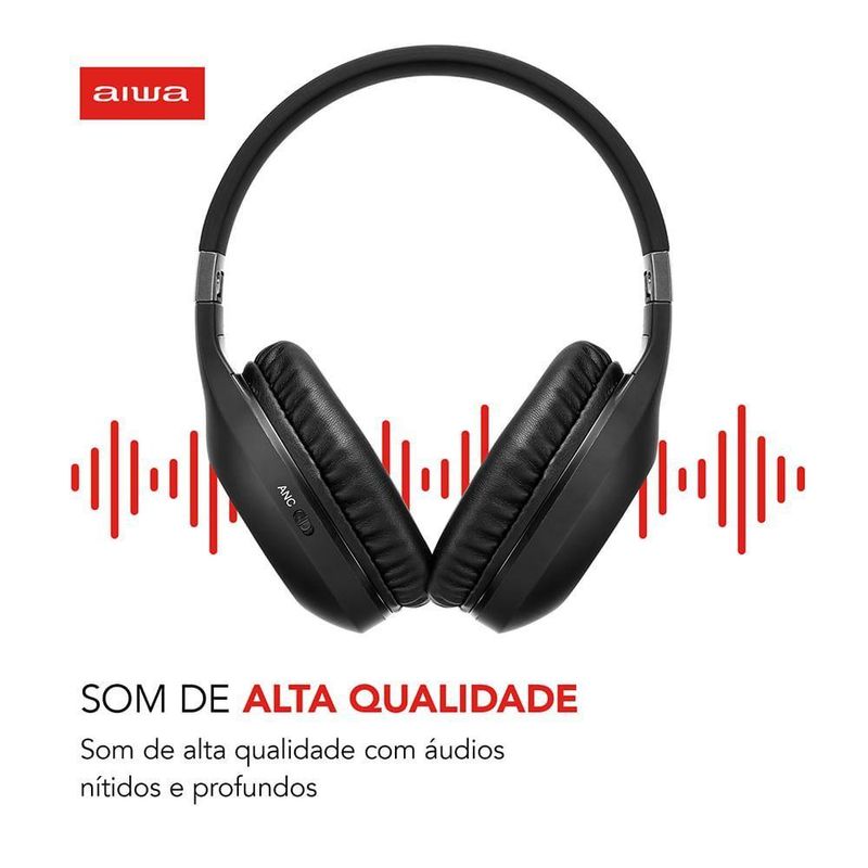 "Som de alta qualidade? Temos! O Headphone AWS-HP-02-B promove uma verdadeira experiência e você consegue ouvir claramente graves potentes! O lançamento com a assinatura AIWA tem CANCELAMENTO ATIVO DE RUÍDO (ANC) e você consegue bloquear ruídos e sons indesejados no ambiente. Além disso, a BATERIA DE ALTO DESEMPENHO proporciona até 28 horas de uso contínuo. Saiba mais sobre o AWS-HP-02-B da AIWA: