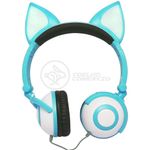 Fone De Ouvido Gatinho Fox Fio Com Led Orelha Gato Dobrável Infantil Microfone - Azul