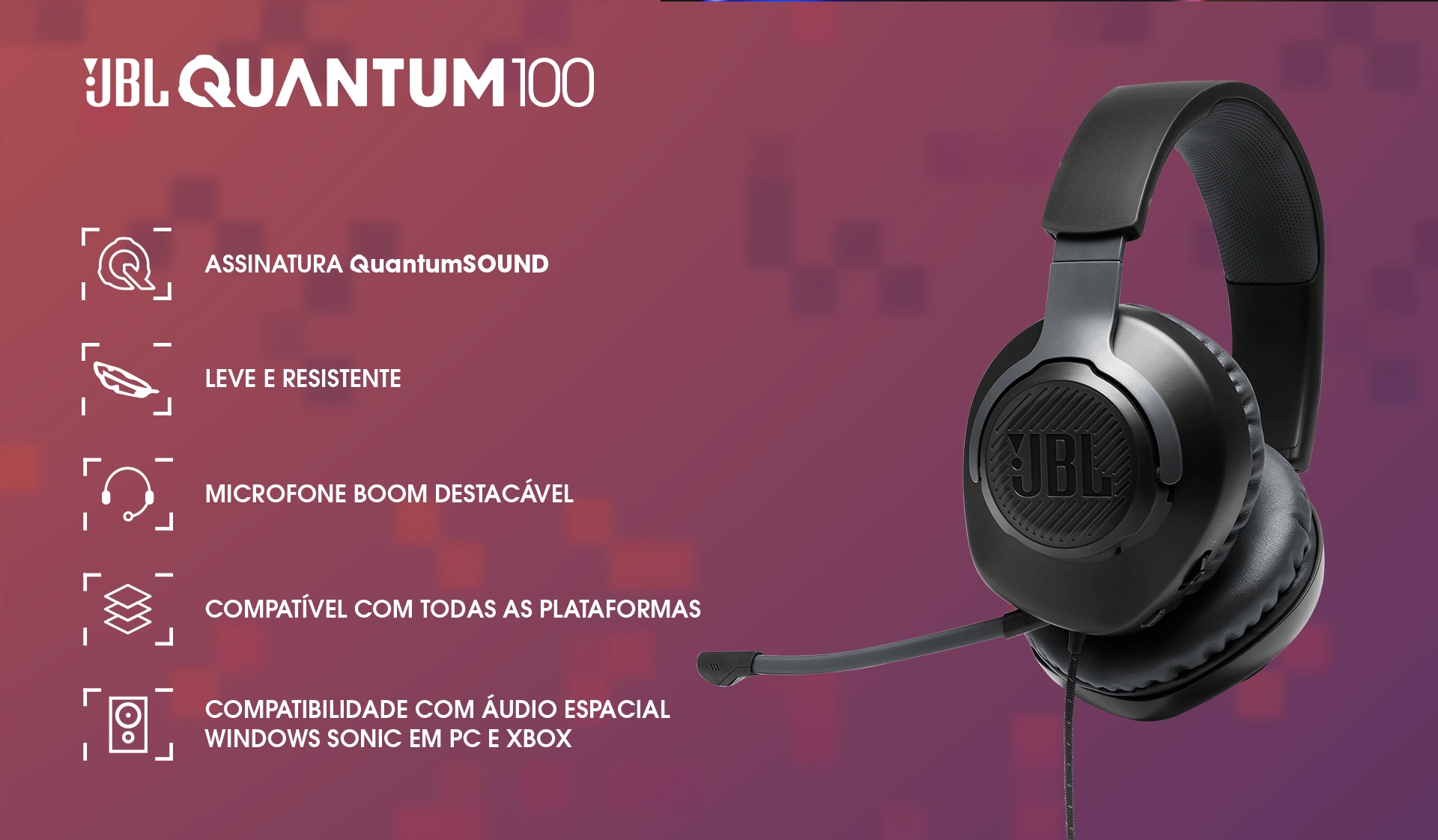 Headset JBL Quantum 100 Gamer Preto