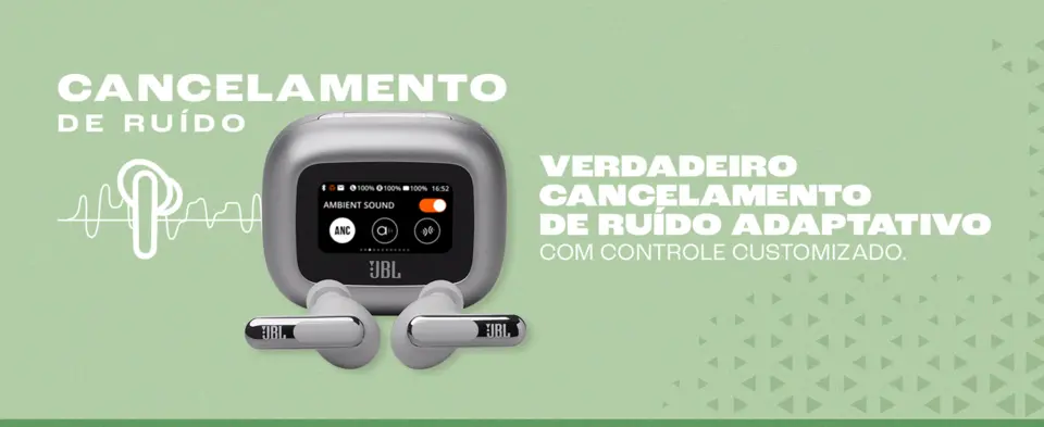 Fones intra-auriculares sem fio com cancelamento de ruído adaptativo, ideais para quem busca imersão sonora e praticidade. O estojo de carregamento possui tela touchscreen de 1,45", permitindo controle direto das funções sem necessidade de aplicativo. Com até 48 horas de reprodução total e resistência à água (IP55), são perfeitos para uso diário e atividades físicas.