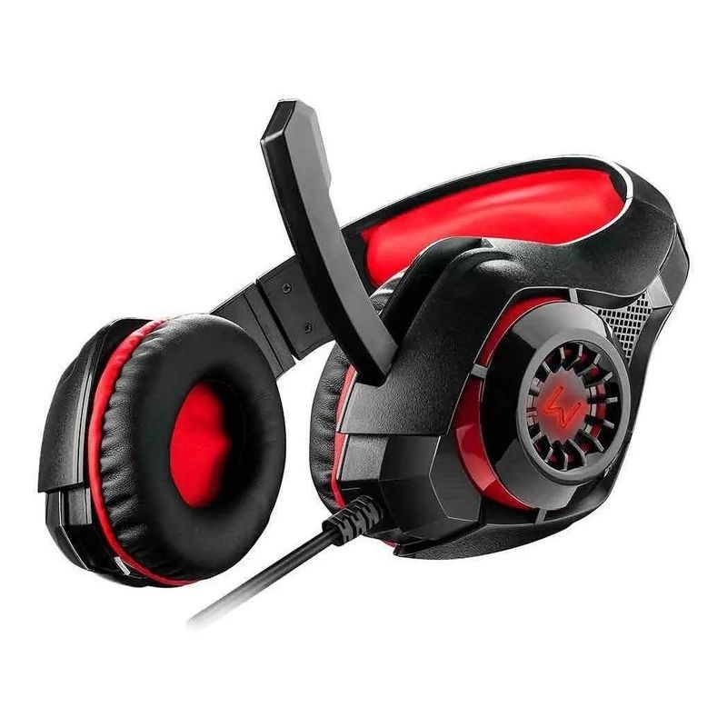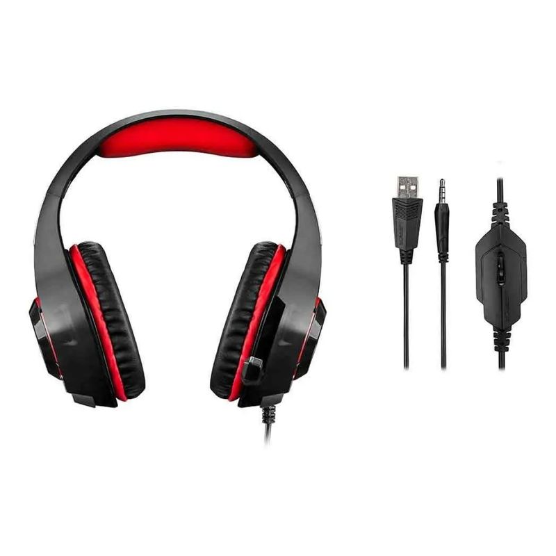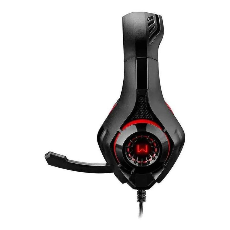 Fone de ouvido over-ear gamer Warrior Rama PH219 preto e vermelho com luz vermelho LED