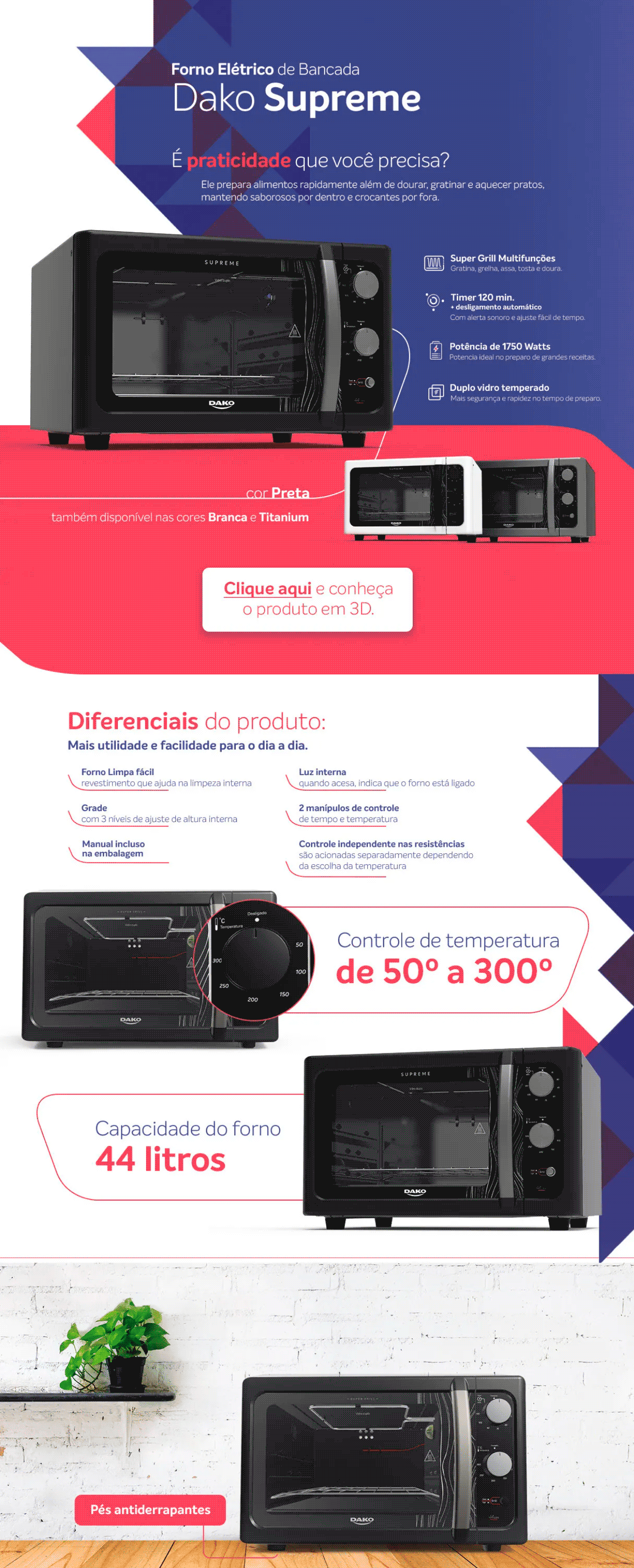 Forno Elétrico com Grill Supreme Dako Preto 44L 220V