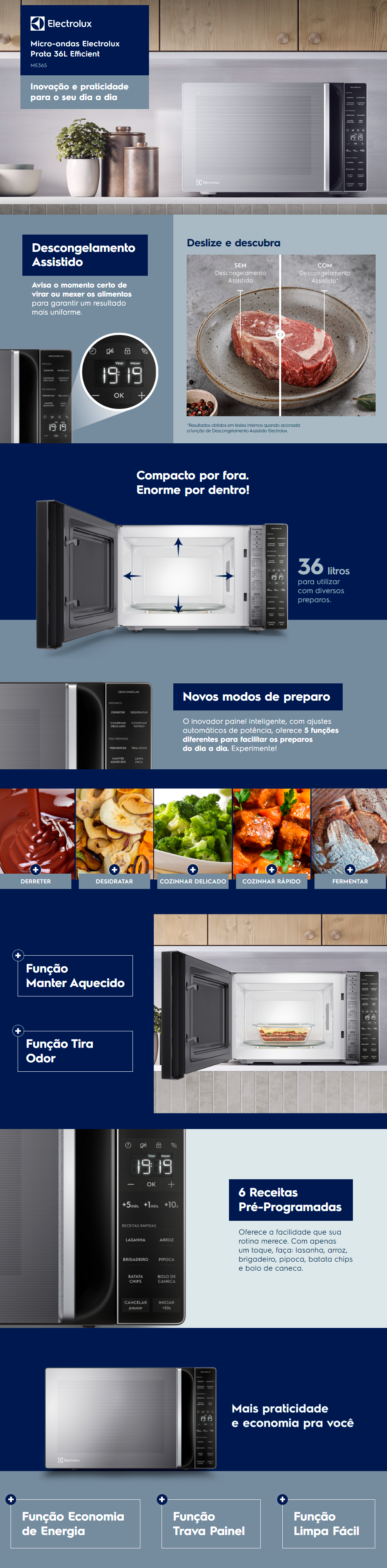 Micro-ondas Efficient Espelhado ME36S Electrolux Prata 36L