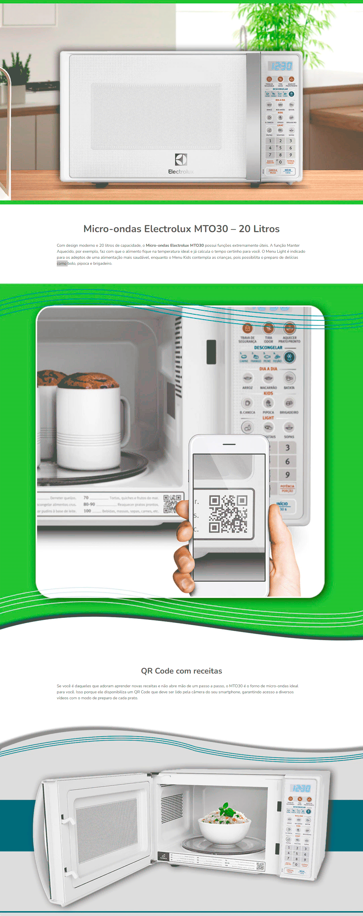 Micro-ondas Electrolux 20L Branco com Função Tira Odor e Descongelar MTO30 220V