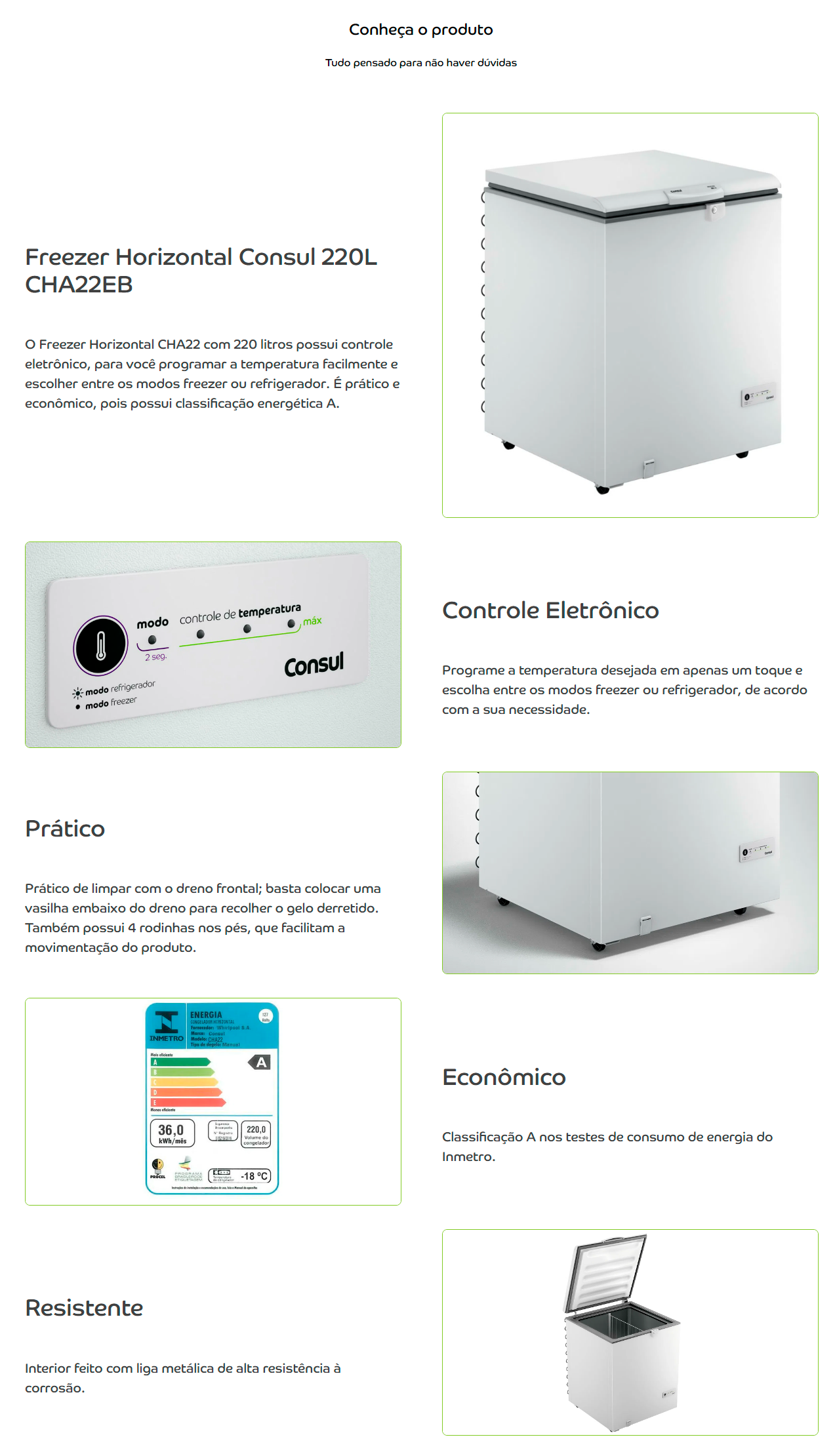 Freezer Horizontal CHA22FB Consul 220 Litros 127V