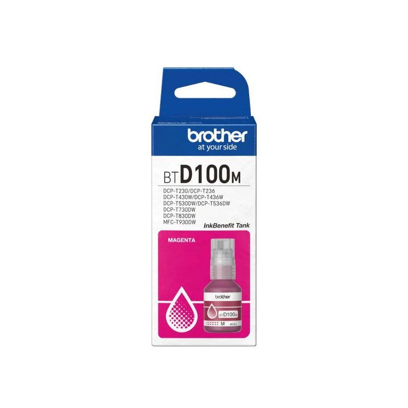 Marca: BrotherModelo: BTD100MCor: MagentaO refil de tinta Brother BTD100M é uma solução prática para quem busca alto rendimento em impressões coloridas. Com volume estimado de 48,8 ml e rendimento de até 5.000 páginas, é indicado para uso doméstico ou profissional. Compatível com a linha InkBenefit Tank, proporciona desempenho estável e instalação facilitada.Especificações Técnicas