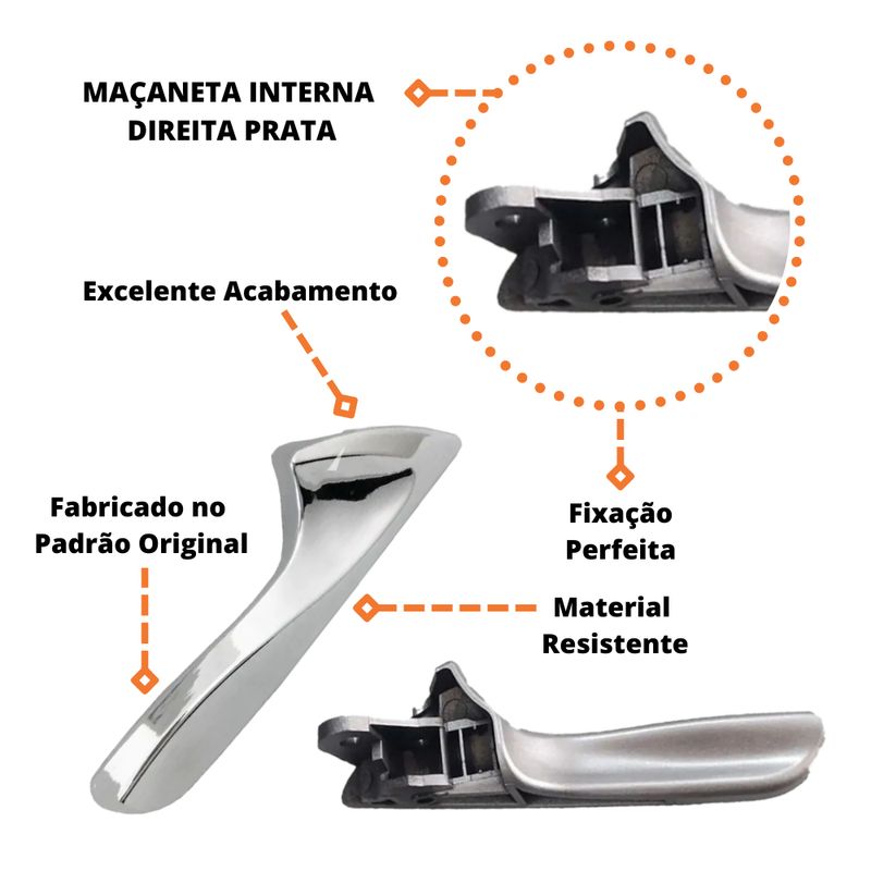 Gatilho Interno HB20 E HB20S 2009 A 2012 Maçaneta Prata Porta Dianteira E Traseira Lado Direito