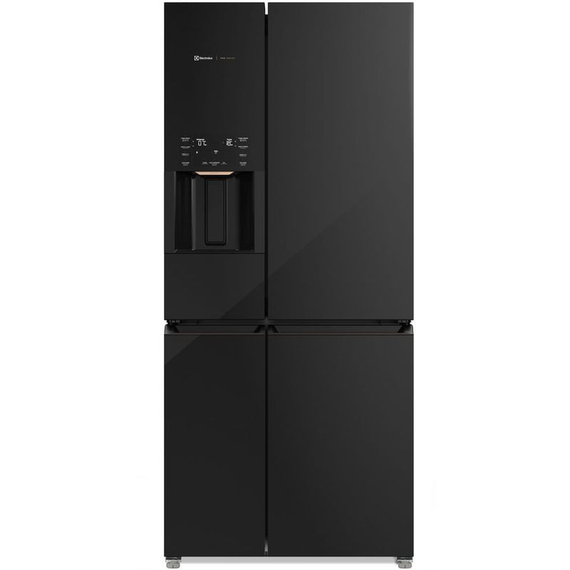 A Geladeira Electrolux Pro Series com FlexiSpace IQ8IB tem quatro portas e tecnologias especiais para preservar seus alimentos por mais tempo e evitar desperdícios. Além disso, seu design moderno e elegante na cor preta entrega sofisticação para sua cozinha, com acabamento externo em vidro preto e detalhes em light gold. O compartimento FlexiSpace é um espaço inteligente com 5 diferentes opções de temperatura, para preservar alimentos e bebidas da forma ideal. As temperaturas variam entre freezer (-23°C), carnes e peixes (-2°C), bebidas frias (0°C), alimentos frescos (3°C) e vinhos (7°C).? Ou seja, você pode ampliar o espaço da sua geladeira ou o espaço do seu freezer, de acordo com o que quiser armazenar. Ativando a temperatura Carnes e Peixes (-2°C) do compartimento FlexiSpace, você mantém 97%1 das proteínas das carnes e preserva por mais tempo a maciez e o sabor originais. Já a tecnologia exclusiva Electrolux AutoSense controla a temperatura automaticamente usando Inteligência Artificial e prolonga a vida dos alimentos por até 30%² mais tempo, evitando desperdícios. Essa função reconhece sua rotina diária e seus hábitos de consumo. Assim, é possível identificar os momentos de maior e menor uso da geladeira, mantendo a temperatura ou deixando-a mais fria. A gaveta TasteLock possui vedação especial e controle automático de umidade, que mantém frutas e vegetais mais frescos por até 14 dias³. A Tecnologia Inverter mantém a temperatura da geladeira mais estável, com redução do consumo de energia e economia de até 25%4, além de garantir condições ideais para preservar os alimentos. O TasteGuard elimina até 9x5 mais rápido os maus odores causados por bactérias, garantindo que sua geladeira permaneça sempre higiênica. Já o filtro de ar ExtraFresh absorve até 90%6 do gás etileno, para desacelerar o amadurecimento de frutas e vegetais e deixá-los mais frescos por mais tempo. Com o Dispenser de água e gelo na porta da geladeira, seu dia a dia fica ainda mais prático. Você pode obter gelo em cubos, filtrados e prontos para o consumo, a qualquer hora. Além de todas as funcionalidades da Geladeira Pro Series com FlexiSpace IQ8IB, a prateleira retrátil e FastAdapt possibilitam diferentes configurações internas para armazenar alimentos de diversos tamanhos e formatos.