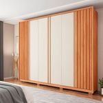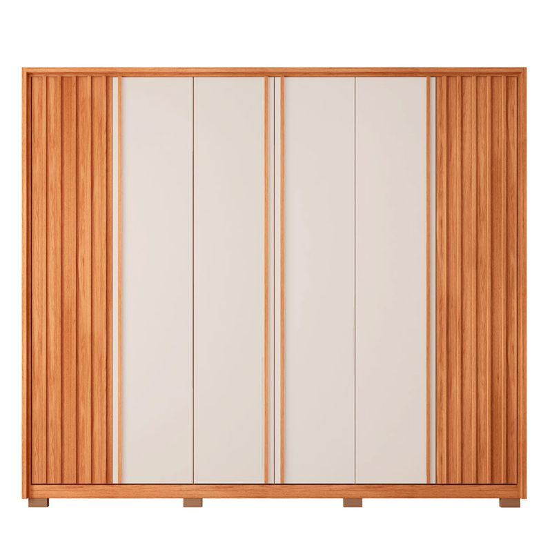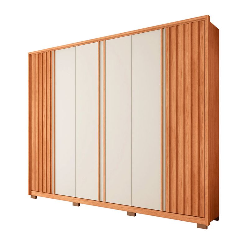 Guarda Roupa 6 Portas 4 Gavetas Apollo Caemmun, Produzido em MDP; Acabamento inteiriço em MDF revestido nas duas laterais; Portas com dobradiças soft close para fechamento suave da porta; Quatro portas com puxadores em MDF revestido;Opção com quatro ou seis gavetas internas com corrediças telescópicas; Quatro cabideiros em alumínio; Quatorze repartições internas; Sapatas e Pés inclusos, possibilitando a montagem com ou sem pés