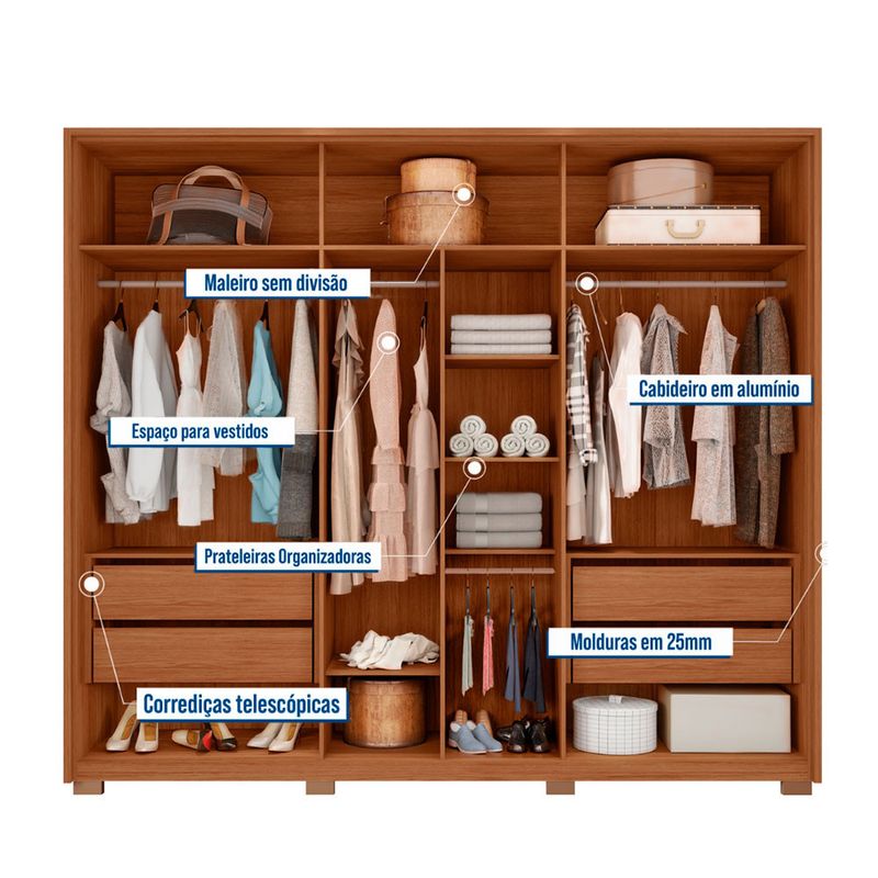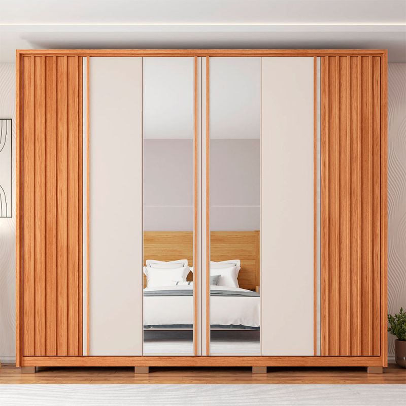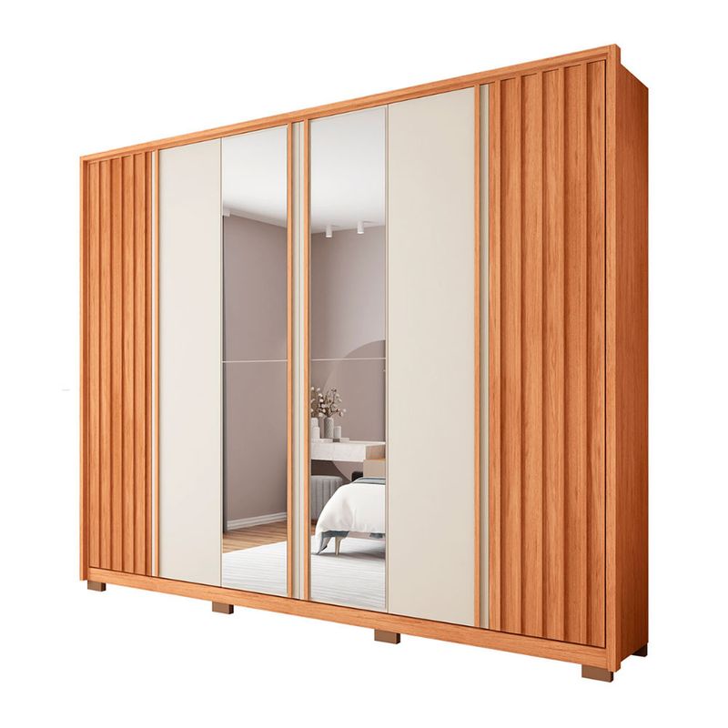 Guarda Roupa Casal Apollo Lux com Espelhos 6 Portas 4 Gavetas Caemmun