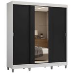 O acabamento da estrutura é em Branco e das portas em preto, combinando resistência e sofisticação. Além disso, o Guarda-Roupa Reno com pés traz um diferencial que proporciona facilidade na limpeza. Com design pensado para unir beleza e funcionalidade, ele é perfeito para transformar seu quarto em um espaço moderno e prático.