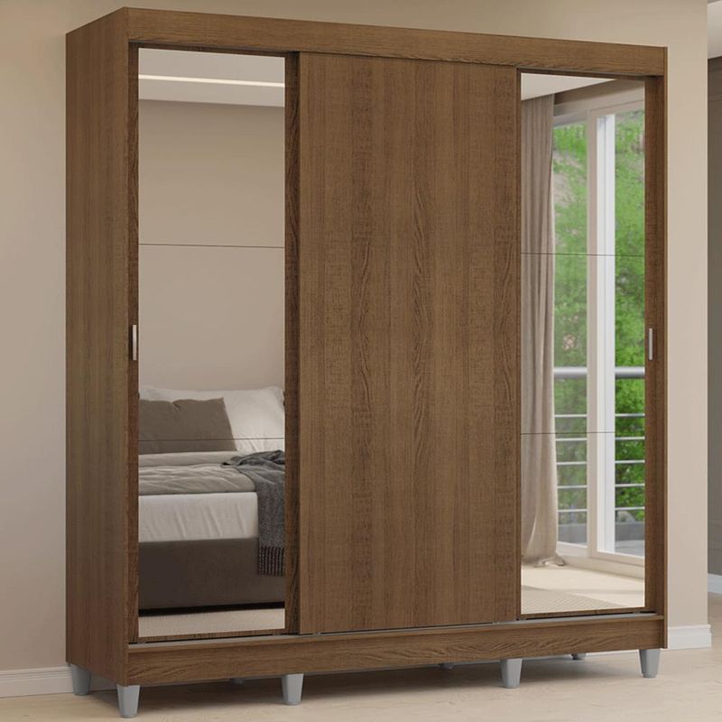 - Um Guarda-Roupa com três portas de correr sendo duas com espelho