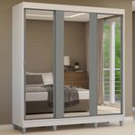 Com três portas de correr que deslizam suavemente graças aos trilhos de alumínio, o guarda-roupa otimiza o espaço, garantindo praticidade no dia a dia. As portas contam com espelhos que ampliam o ambiente e trazem ainda mais funcionalidade. Essa versão do Reno vem com pés, o que facilita a limpeza e dá um toque moderno ao design.