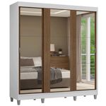 Com três portas de correr que deslizam suavemente graças aos trilhos de alumínio, o guarda-roupa otimiza o espaço, garantindo praticidade no dia a dia. As portas contam com espelhos que ampliam o ambiente e trazem ainda mais funcionalidade. Essa versão do Reno vem com pés, o que facilita a limpeza e dá um toque moderno ao design.