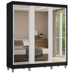 Com três portas de correr que deslizam suavemente graças aos trilhos de alumínio, o guarda-roupa otimiza o espaço, garantindo praticidade no dia a dia. As portas contam com espelhos que ampliam o ambiente e trazem ainda mais funcionalidade. Essa versão do Reno vem com pés, o que facilita a limpeza e dá um toque moderno ao design.