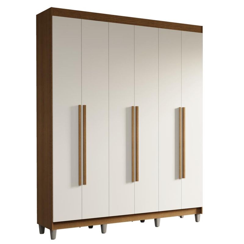Com acabamento de alta resistência, o Guarda-Roupa Saturno garante durabilidade por muito mais tempo. A estrutura em tom amadeirado Rustic e as portas são brancas criando um visual sofisticado, que se adapta a qualquer estilo de decoração. Os puxadores de 80 cm, fabricados em MDF, são um dos grandes diferenciais, trazendo um design alongado e moderno. Os pés elevam o móvel, agregando elegância e facilitando a limpeza do ambiente.