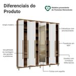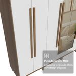 A estrutura e os puxadores em tom amadeirado Rustic combinados com portas Brancas criam um visual elegante e moderno. Os puxadores de 80 cm em MDF destacam o design alongado do móvel, e os pés elevam o guarda-roupa, facilitando a limpeza e valorizando o ambiente.