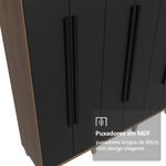O acabamento de alta resistência garante durabilidade por muito mais tempo. A estrutura e os puxadores em tom amadeirado Rustic, combinados com as portas pretas, criam um design moderno e elegante. Os puxadores de 80 cm, fabricados em MDF, destacam-se pelo design alongado, enquanto os pés elevam o móvel, facilitando a limpeza e conferindo ainda mais estilo.