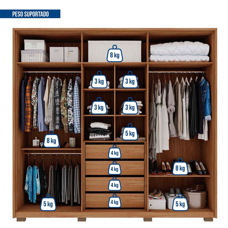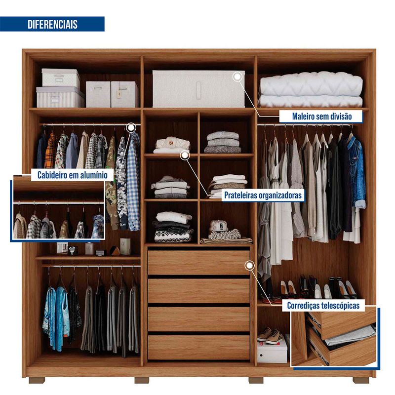 Guarda Roupa Casal Mozart 6 Portas 4 Gavetas Caemmun
