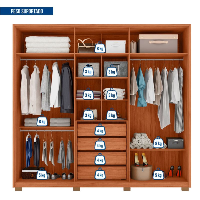 Guarda Roupa Casal Mozart 6 Portas 4 Gavetas Caemmun