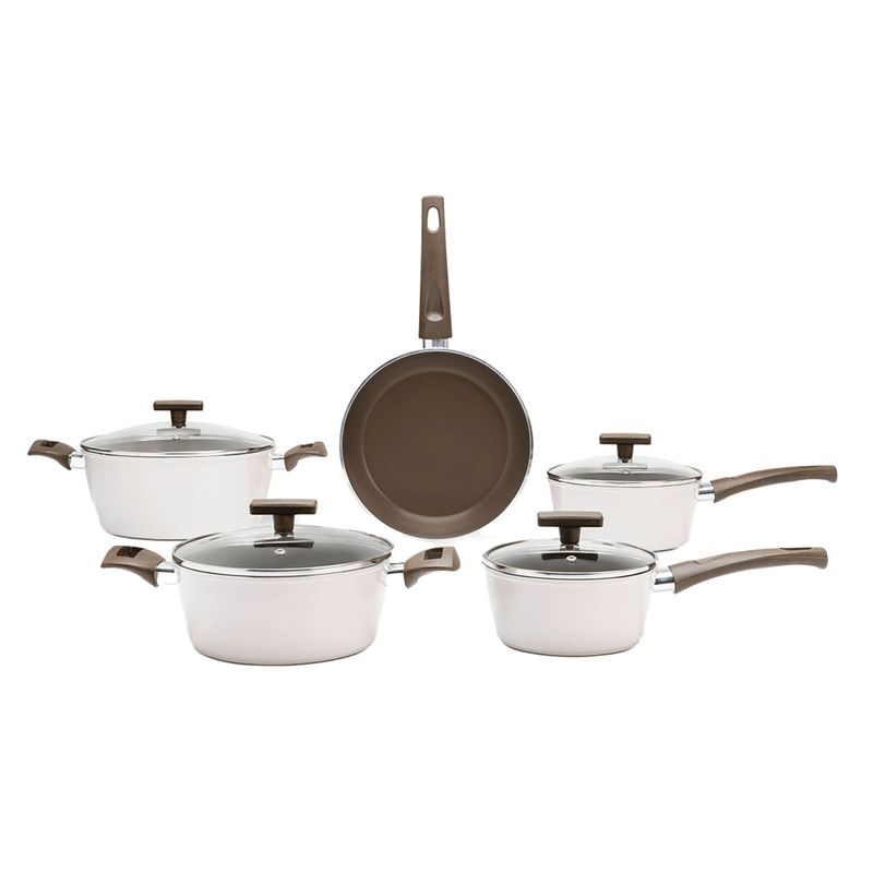 Com o Jogo de Panelas Brinox Antiaderente Ceramic Life 5 Peças Organika com Indução Nata você tem na sua cozinha tecnologia e responsabilidade ambiental. De quebra, torna o preparo dos alimentos muito mais fácil e agrega ainda mais beleza à sua cozinha com o design contemporâneo desse jogo de panelas. As panelas contam com revestimento Pro Ceramic Premium antiaderente Mineral Resist, o que torna o preparo de pratos mais saudável, pois cozinha com menos óleo, e a limpeza mais prática. Além de saudável, esse conjunto de panelas é sustentável e integra o Projeto Green Planet Brinox. O alumínio da estrutura das panelas possui 3 mm de espessura, permitindo o aquecimento dos alimentos de maneira uniforme e acelera o processo de cocção, é 98% proveniente de materiais reciclados. O Conjunto de Panelas 5 Peças Organika é composto por 1 Caçarola com Tampa Ø 24 x 10,5 cm - 3,8 L; 1 Caçarola com Tampa Ø 20 x 8,5 cm - 2,2 L; 1 Panela com Tampa Ø 18 x 8 cm - 1,6 L; 1 Panela com Tampa Ø 16 x 7,5 cm - 1,2 L; e 1 Frigideira Ø 24 x 4,7 cm - 1,6 L. A cor Nata deste conjunto traz sofisticação e cabos/alças são em baquelite com no mínimo 50% de resíduos reutilizados na cor Marrom. As tampas, em vidro temperado, têm saída para o vapor. O conjunto de panelas ainda conta com a certificação PFOA free, isto é, são itens livres de liberação de toxinas. Produtos de alta durabilidade, que ao final do ciclo ainda podem retornar para se tornar um novo produto, pois o alumínio das panelas é 100% reciclável. A embalagem é 100% biodegradável. Sustentabilidade é uma das marcas do Grupo Brinox, que agora incorpora novas linhas de produtos às ações de cuidado com o meio ambiente nos seus processos produtivos. O Projeto Green Planet Brinox traz itens produzidos com os mais altos padrões tecnológicos, agregando responsabilidade ambiental e sofisticação. Acesse o site e conheça nossa linha completa de produtos.