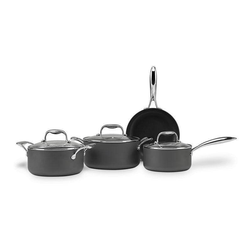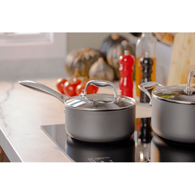 O Jogo de Panelas Brinox Antiaderente Pro-Flon Premium 4 Peças Diamond com Indução Cinza é composto por: