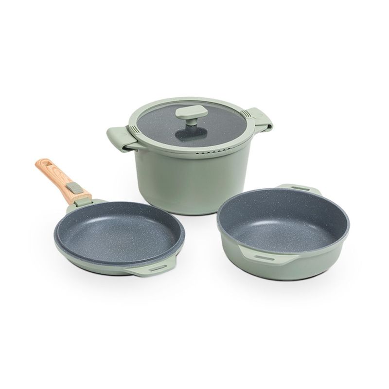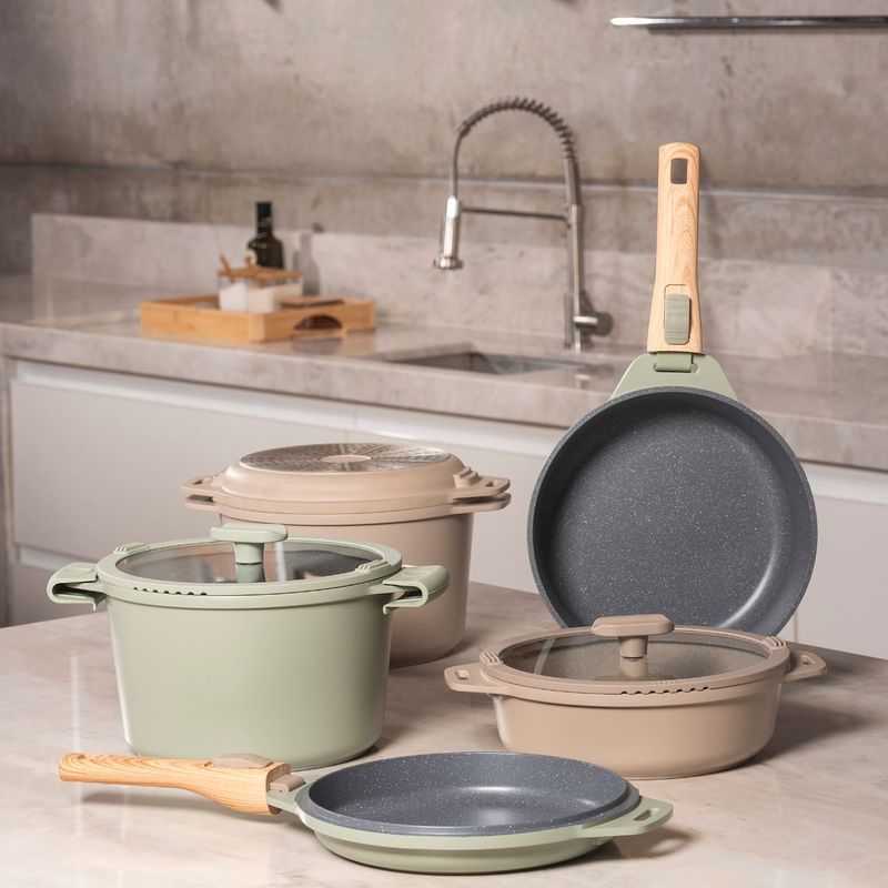 Jogo de Panelas Empilhável Brinox Loft 7 Peças Verde – Antiaderente, Indução e Cabo Removível